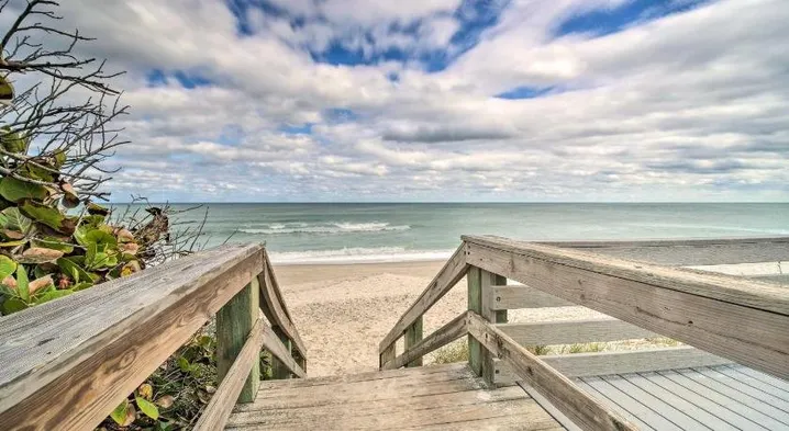 Oceanfront condo in Cocoa Beach with 2 bedrooms, 2 bathrooms, and access to scuba diving and cycling adventures.