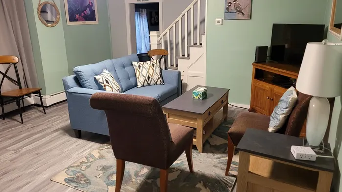 Cozy apartment in Frostburg with air conditioning, laundry service, and a garden for a relaxing stay.