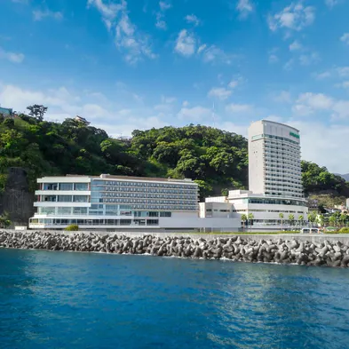 Relax at this oceanfront hotel with a full-service spa, hot springs, and three dining options in Atami.