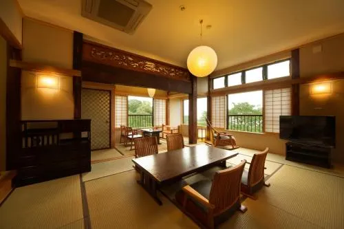 Luxury ryokan with hot springs, ocean views, and French cuisine, featuring a terrace and free valet parking.