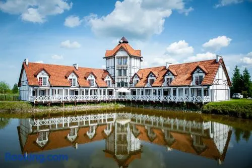 Relax at this waterfront hotel featuring a private beach, spa, indoor pool, and international dining in Lukta, Poland.