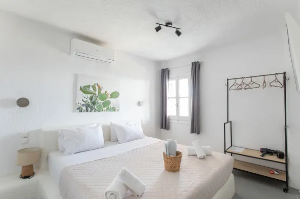 Ornos experiences a Mediterranean climate characterized by warm summers and mild winters. During peak summer months, temperatures can soar, making air conditioning essential for a comfortable stay. It helps maintain a pleasant indoor environment, allowing guests to relax and recuperate after exploring the beach or town. Evenings can be warm, so having air conditioning can enhance your sleeping comfort.