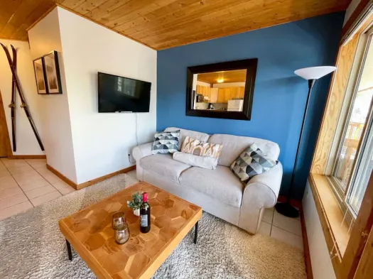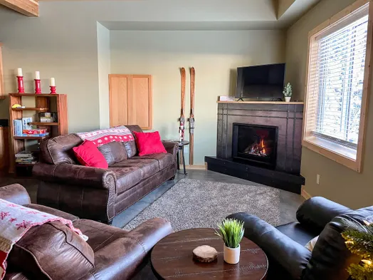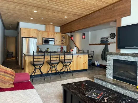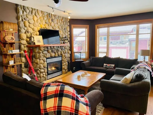 Cozy condo with a wood fireplace, smart TV, and a fully equipped kitchen in the heart of Apex Mountain Resort.