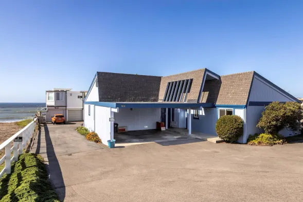 Cottage with ocean views, two bedrooms, and a private gate to San Simeon beach, perfect for families and pets.
