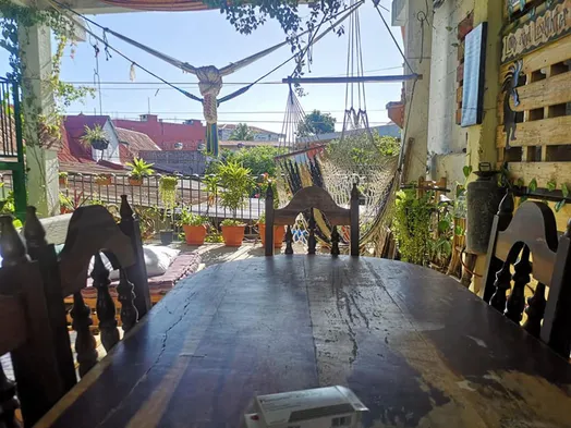 Experience a vibrant hostel in Flores with artistic rooms, a lush garden, and a famous restaurant for an unforgettable stay.