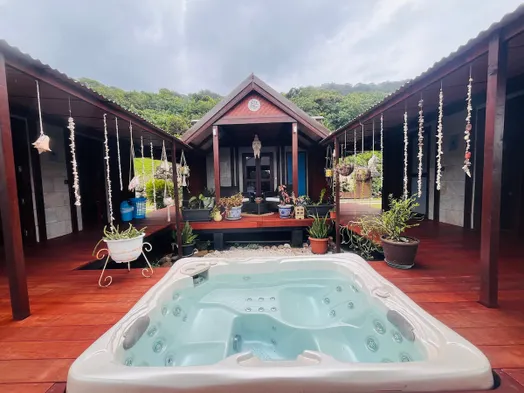Enjoy a vacation home in Moorea with an outdoor pool, free Wi-Fi, and a terrace for relaxation.