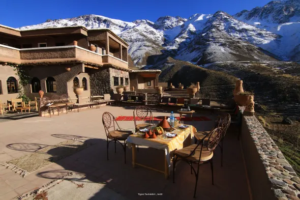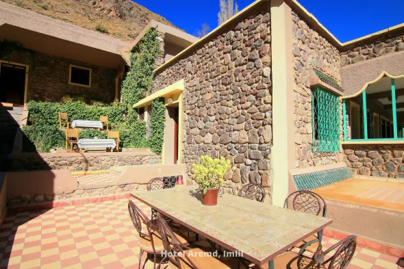 Hotels in Imlil generally offer a variety of amenities to enhance your stay. Many establishments feature free Wi-Fi, on-site dining options including local Moroccan cuisine, and cozy lounges with stunning views of the surrounding mountains. You can also find amenities such as breakfast services, room service, and some may even offer guided tours, hiking equipment rentals, or wellness facilities like spas to help you relax after a day of trekking.