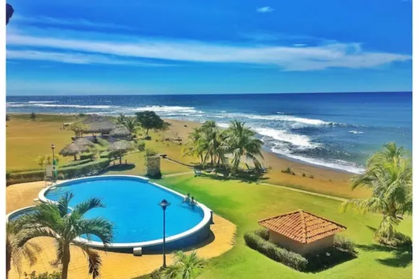 Beachfront aparthotel with 2 outdoor swimming pools, full-service spa, and golf course nearby.