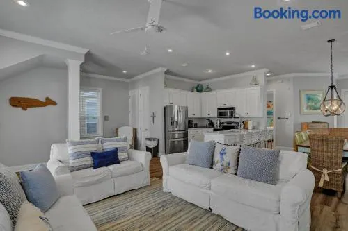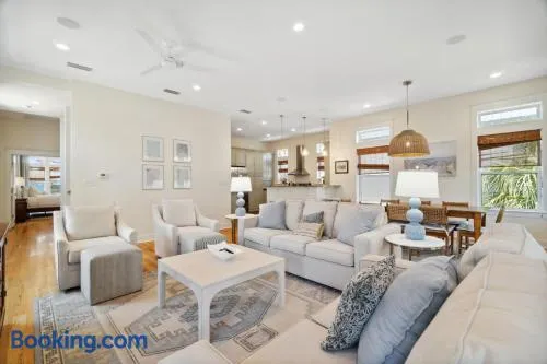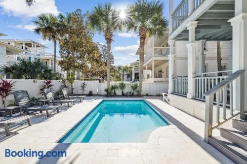 Holiday home with swimming pool, private beach access, and free parking in Rosemary Beach, Florida.