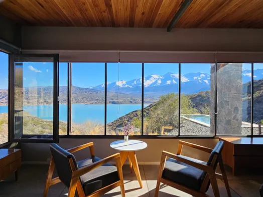 Luxury lodge with outdoor pool, private balconies, and stunning mountain views in Potrerillos.