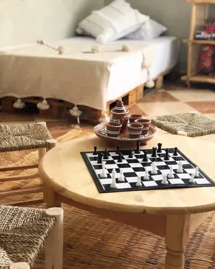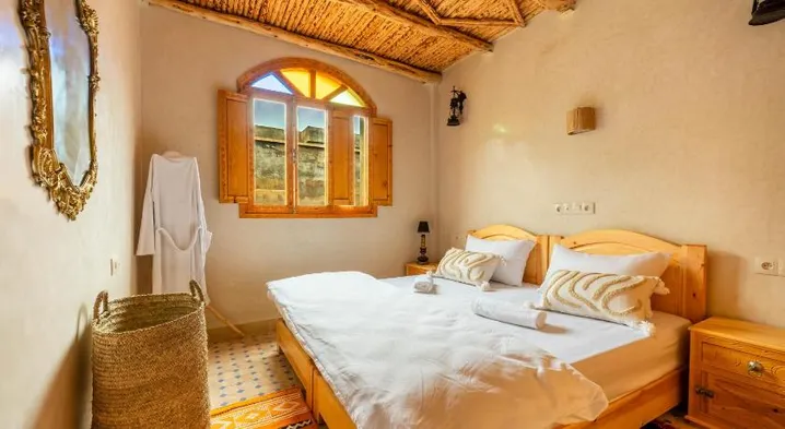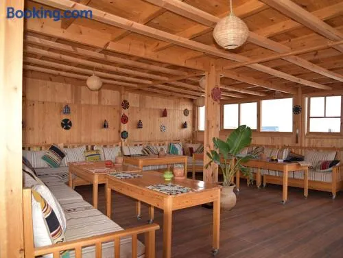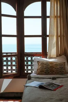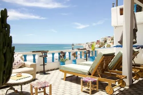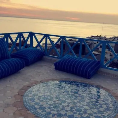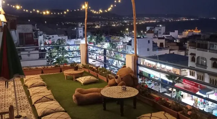 Affordable hostel with a rooftop terrace and stunning ocean views in Taghazout, Morocco.