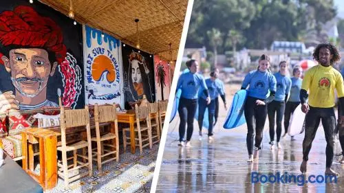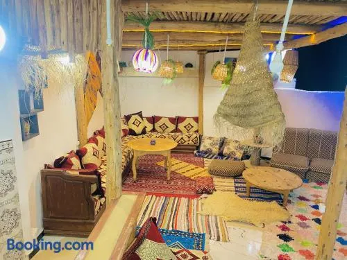 Hostel with free parking, outdoor fireplace, and nearby beach access in Tamraght Ou Fella, Morocco.