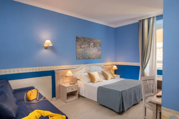 Centrally located hotel in Rome with fitness center, restaurant, and terrace, ideal for families and business travelers.
