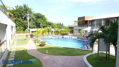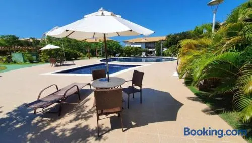 Apartment with swimming pool, free parking, and nearby beach access in Imbassai, Bahia.