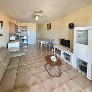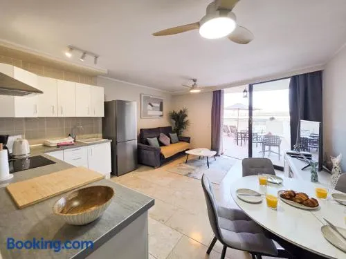 Apartment with outdoor heated pool, restaurant, and terrace in Los Cristianos, featuring free WiFi and stunning pool views.