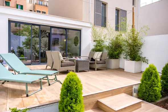 Luxury spa hotel with indoor and outdoor pools, located in the heart of Palma de Mallorca, near major attractions.