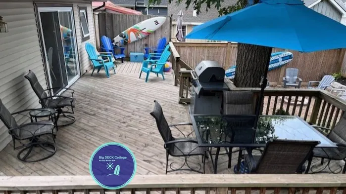 Big DECK Cottage, 3-min walk to BEACH- 4 bdrms, 1.5 baths 7 beds, parking 3 cars