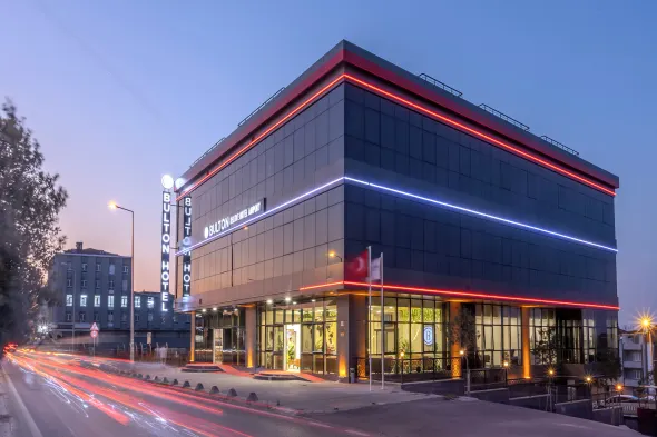 Luxury hotel with indoor pool, sauna, fitness center, and on-site dining in Istanbul's Bağcılar district.