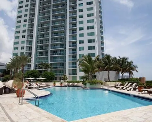 Luxurious apartment with 3 outdoor pools, spa services, and a prime location in downtown Miami.