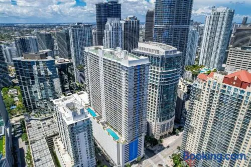 Luxurious apartment with 3 outdoor pools, spa services, and a prime location in downtown Miami.