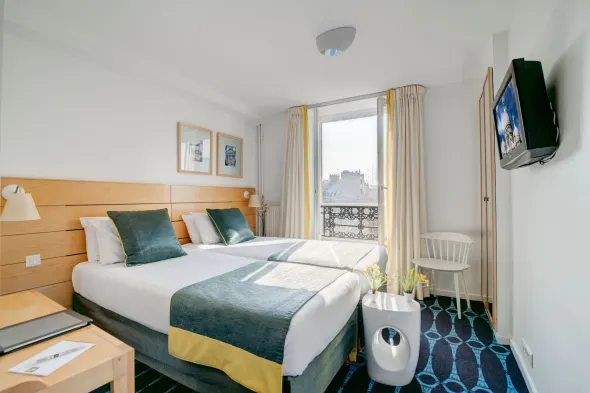 Centrally located hotel in Paris with complimentary wifi and concierge services, steps from Place de Clichy and Moulin Rouge.