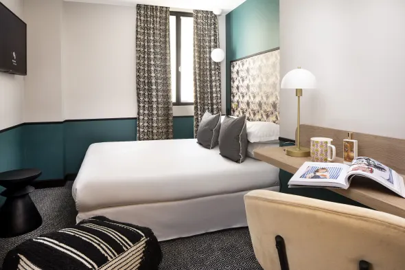 Comfortable hotel in the heart of Paris with air-conditioned rooms and concierge services.