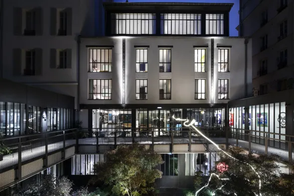Boutique hotel in Paris with convenient amenities, including a snack bar and concierge services, steps from Atelier des Lumières.