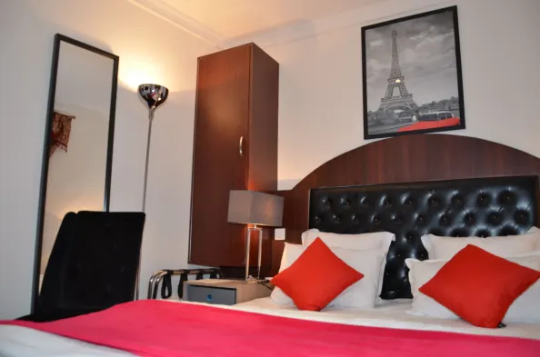 Charming hotel in Paris with convenient access to Sacré-Cœur Basilica and Moulin Rouge, featuring comfortable rooms and free wifi.