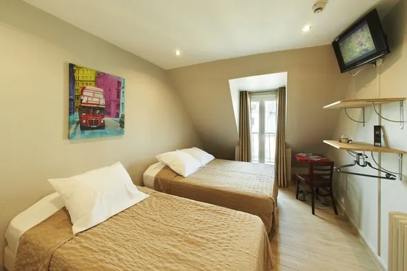 Comfortable hotel in Paris with air-conditioned rooms, 24-hour reception, and a coffee shop for convenient dining options.