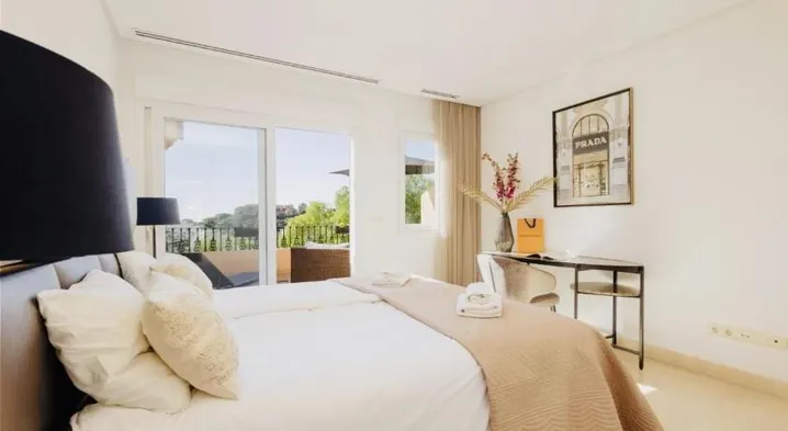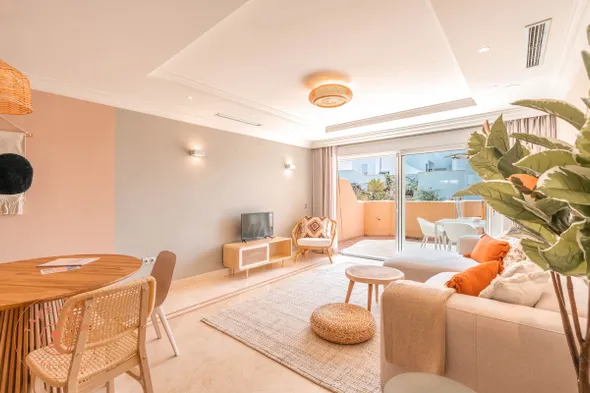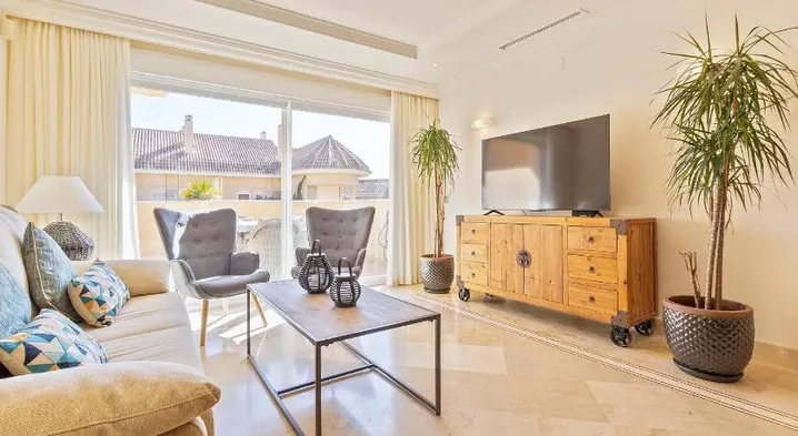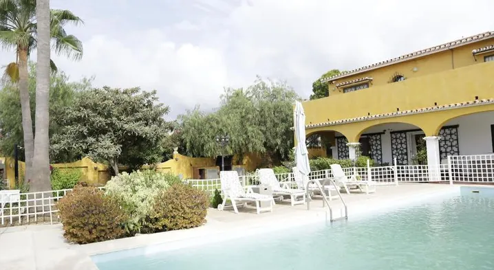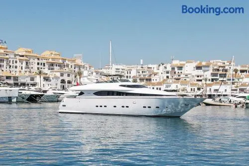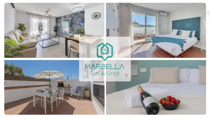 Aparthotel in Marbella with air-conditioned rooms, kitchens, and hot tub, just a short walk from Puerto Banús Marina.
