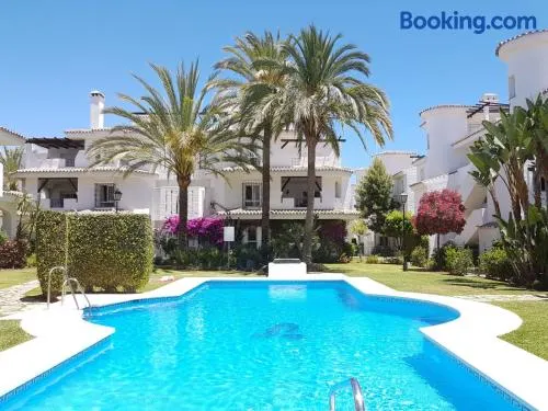 Family-friendly hotel with outdoor swimming pool, tennis courts, and a restaurant in Marbella, 1 km from the beach.