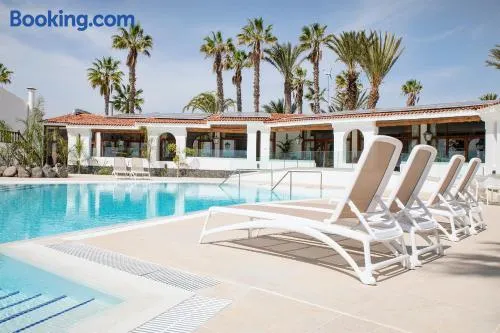 Serviced apartment with swimming pool, free parking, and laundry service near Costa del Silencio's rocky beach.