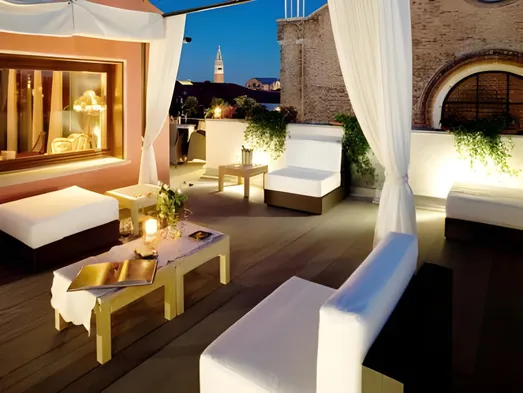 Luxury hotel in Venice with rooftop terrace, Italian cuisine restaurant, and concierge services.