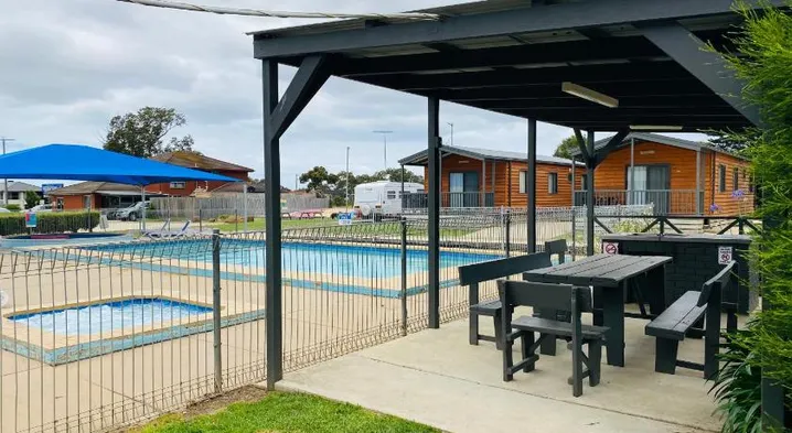 Family-friendly holiday park with outdoor pool, arcade, and barbecue grills in Geelong's Belmont area.