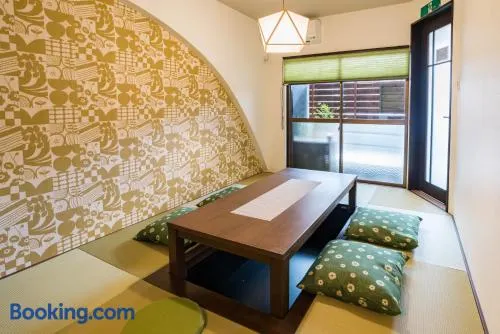 Enjoy a cozy stay in Osaka with air-conditioned rooms, bicycle rental, and a communal kitchen for meal prep.