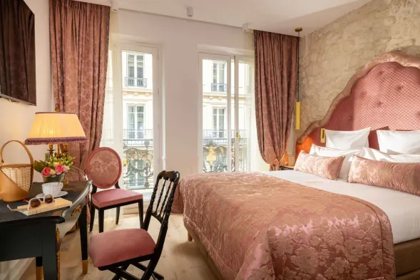 Centrally located hotel in Paris with sauna, fitness center, and individually decorated rooms featuring deep soaking bathtubs.