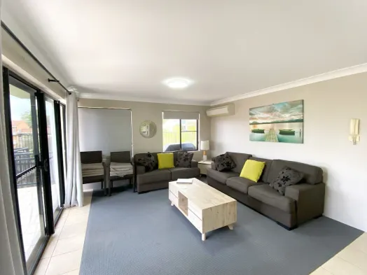 Beach holiday park with air-conditioned rooms, kitchens, and private balconies, steps from Headland Historical Museum.