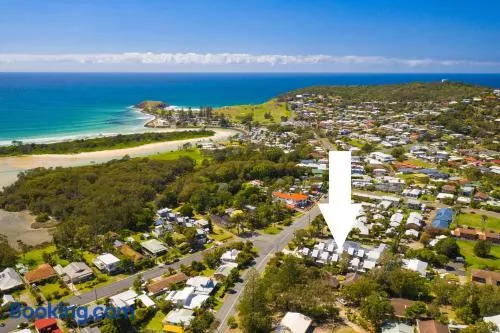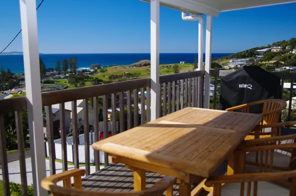 Relax in a coastal vacation home with ocean views, jetted tub, and spacious living areas in Crescent Head.