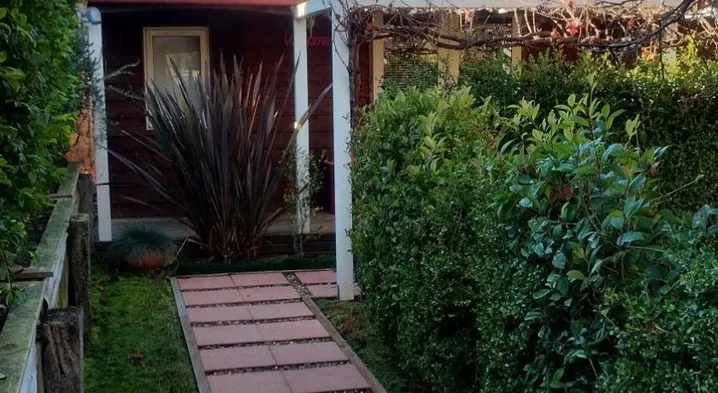 Bright cabin park with shared kitchen, garden, and access to hiking and biking trails.