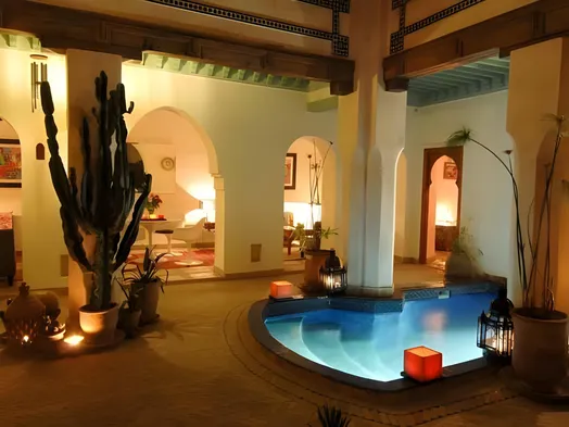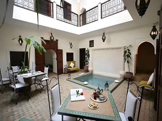 Hotels with a jacuzzi near Jemaa el-Fnaa typically offer a range of amenities designed for relaxation and comfort. You can expect well-appointed rooms, many featuring traditional Moroccan decor, free Wi-Fi, and flat-screen TVs. Additionally, most hotels will have spa services, including massages and beauty treatments, allowing guests to unwind both in their private jacuzzis and through professional services. Many establishments also present onsite restaurants serving local and international cuisine, providing an opportunity to savor delicious meals without having to venture far.