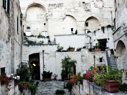 Luxury hotel with individually furnished rooms, onsite massages, and a complimentary full breakfast in Matera.