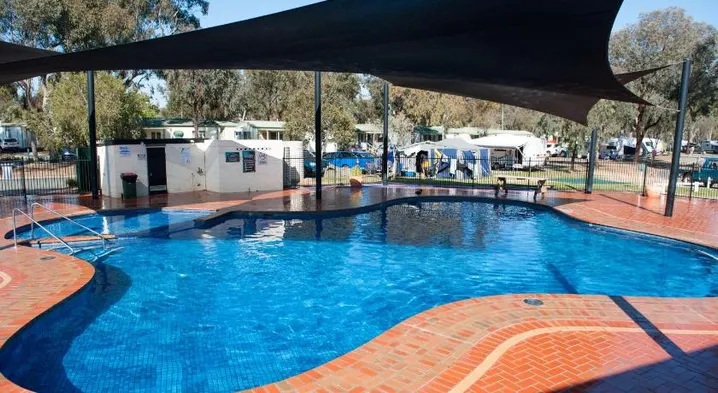 Family-friendly holiday park with 2 outdoor swimming pools and tennis courts in Echuca Village.