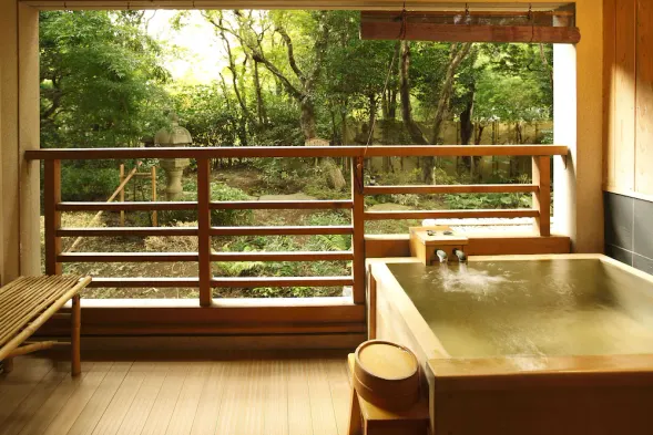 Luxury ryokan with hot springs, indoor and seasonal outdoor pools, and a renowned French restaurant in Hakone.