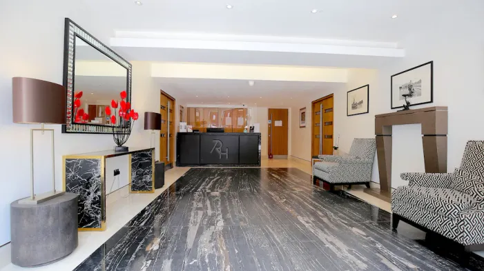Luxury hotel with spa services, indoor pool, and Mediterranean dining in Chelsea Harbour, London.