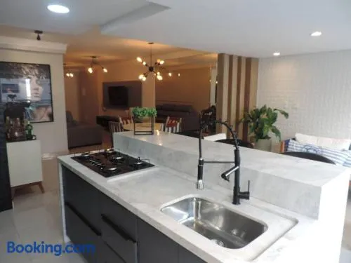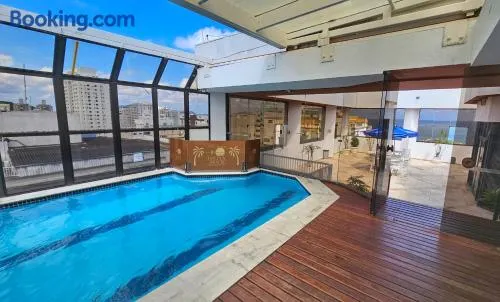 Enjoy an indoor pool, steam room, and Brazilian cuisine at this hotel near Ponta da Praia beach in Santos.