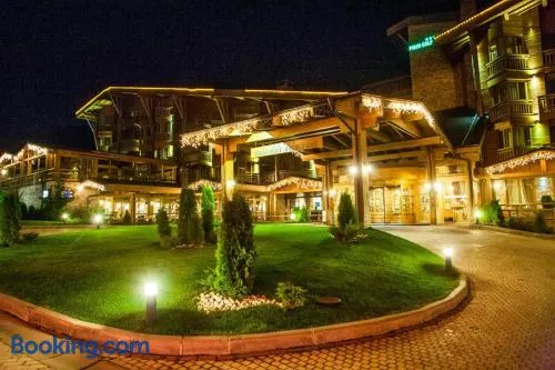 Experience luxury with a full-service spa, three indoor swimming pools, and gourmet dining in the heart of Bansko.
