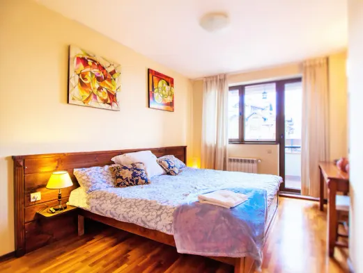 Comfortable accommodation in Bansko with kitchenette, private bathroom, and garden access for a relaxing stay.