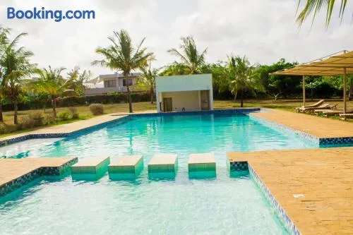 Beach hostel with swimming pool, onsite dining, and activities like karaoke and scuba diving in Kilifi.