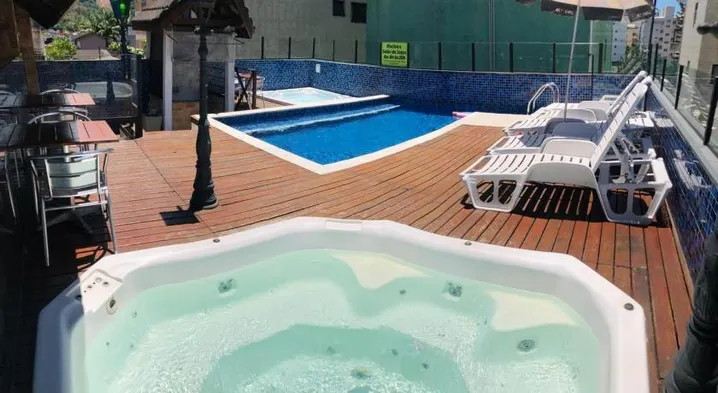 Enjoy an outdoor pool and steam room at this hotel near Enseada Beach in Guarujá.