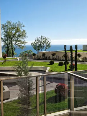 Luxury beach hotel with spa, indoor and outdoor pools, tennis courts, and two on-site restaurants in Saints Constantine and Helena.